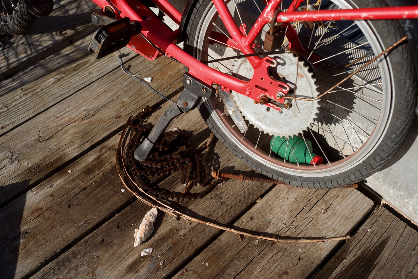 On a bike, I feel free. I can cover more ground, slip into places a car can’t go, and take my time. That day, I found myself weaving through the backs of office parks, sketchy side streets, and eventually down to the river — where I swim most days of the week. I laugh to myself at how much ground I ended up covering.