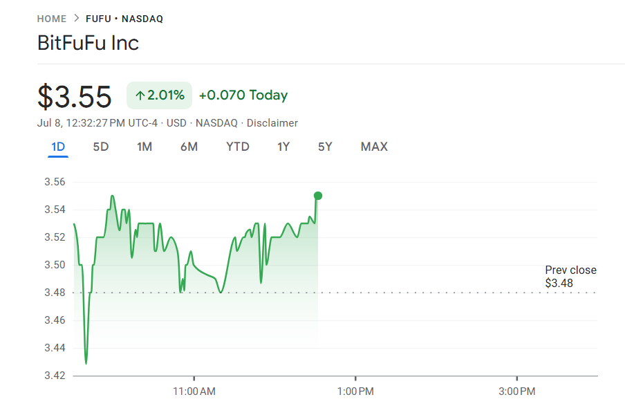 Its stock performance also shows investor confidence. On July 7, 2025, BitFuFu shares rose 1.16% to $3.48, with an 8.82% gain over five days, according to [Google Finance](https://www.google.com/finance/quote/FUFU:NASDAQ). Earlier in January 2025, the stock surged 13% to $5.60 following the Bitmain agreement announcement, reflecting market optimism about its growth potential.