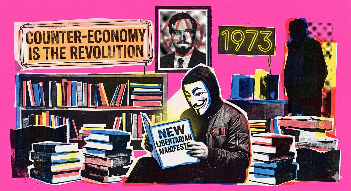 He was writing before the internet, before public-key cryptography, before Bitcoin. He was imagining the possibility; we are living the reality. The tools Konkin lacked — private communication, pseudonymous identity, cryptographic money — now exist. Agorism went from philosophy to infrastructure.